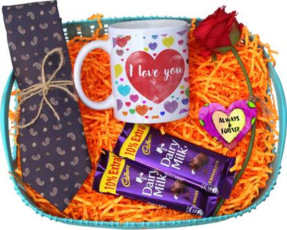 Tied Ribbons Valentines Day Combo Set For Boyfriend Fiance Husband Boys Gift Pack Tie Coffee Mug Dairy Milk Chocolates Wooden Tag Artificial Red Rose In A Basket Plastic Gift Box Price In India Buy